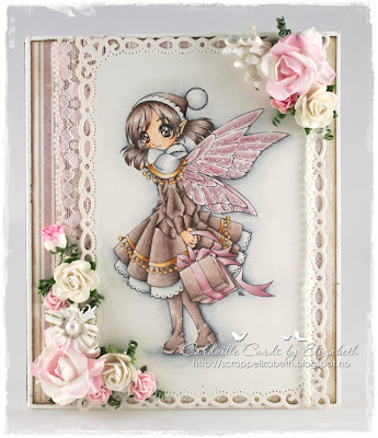 I had to add a Magnolia image to my project, as always, so I inked up one of my mini Magnolias, Tilda with many hearts, using Copic Markers. I used the E70's for the hair and shoes, RV90's for the dress and hearts, for the skin I used my usual combo: E13-11-00-000.