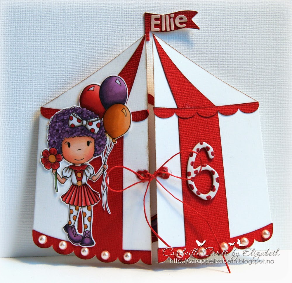 I wanted to make two fun birthday cards for the lovely little Ellie, turning 6, and sweet Owen turning 2 . According to mum Christine, over at the Paper Nest Dolls, they both wanted circus themes, so I inked up the cute new images by The Paper Nest Dolls, got my Silhouette out, and here's the result: